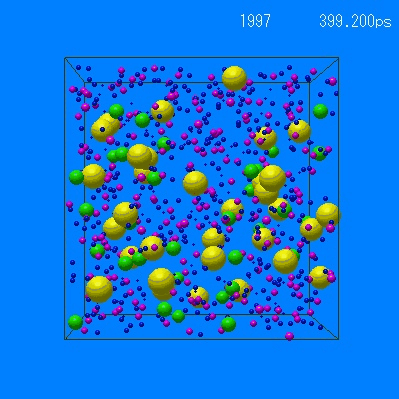 さらに約200 ps 経過すると,NaClは水に完全に溶解しました。