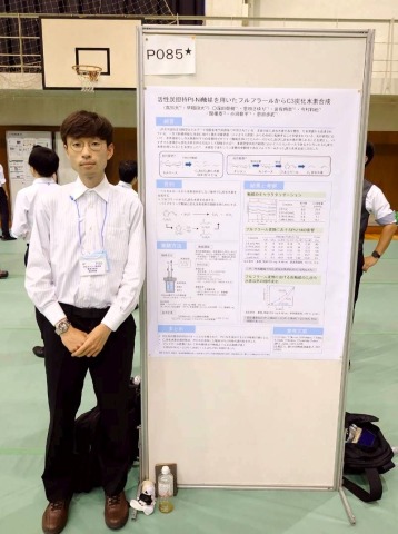 〇 堀江成樹, 深田幹樹, 恩田さゆり, 岩佐侑奈, 今村和也, 大淵ゆきの, 関根泰, 小河脩平, 恩田歩武, Pt担持触媒による水熱条件下でのフルフラールからC3炭化水素への直接変換