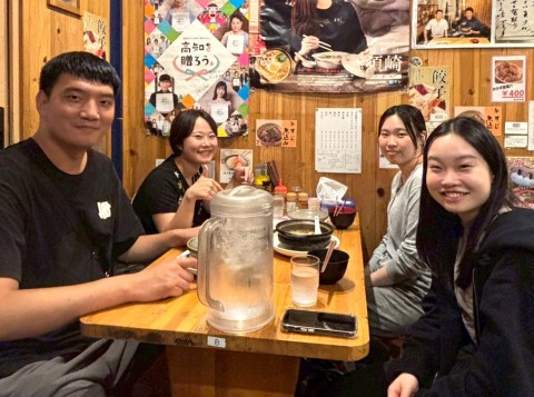 10月14日に高知市内の居酒屋にて、留学生のウーさんとリンさん、早稲田大学の学生さんの歓迎会をしました。