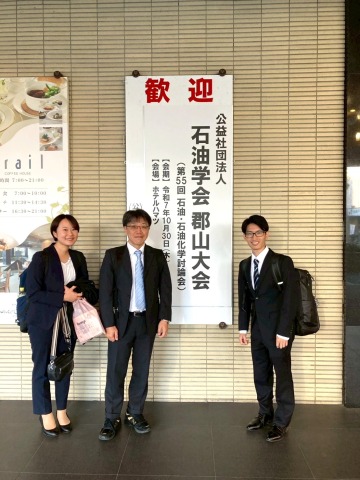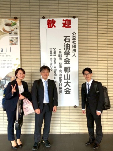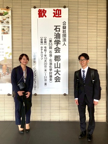 10月30~31日に福島県郡山市で開催された第55回石油・石油化学討論会において、M2の竹下さんとM1の國定くんが研究発表をしました。