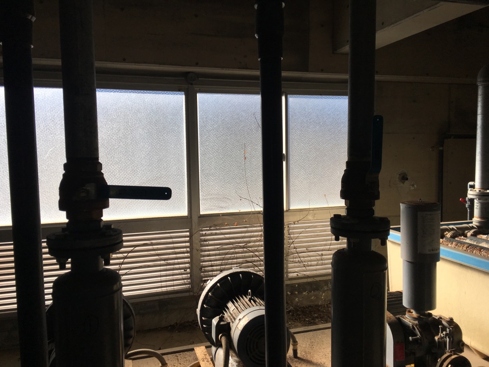 飼育施設の心臓とも言える揚水ポンプです。陸上に4台、水中に1台あります。地下海水を使用しているため、基本的に病気の原因となる寄生虫、バクテリア、ウイルスが含まれていません。つまり、病気にほとんどならない環境で飼育できます。