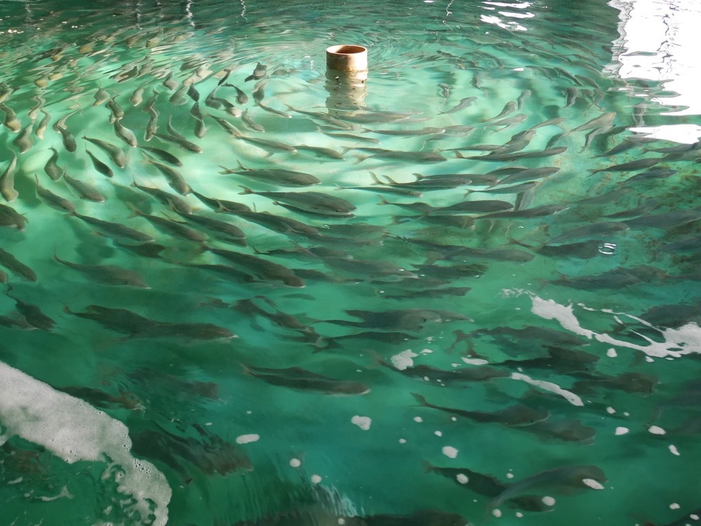 ブリ・マダイを飼育するためには、大きな水槽が必要です。この施設では、ブリだと5g程度から3.5kgまで、マダイだと3g程度から2.5kgまで育てることができます。屋内なので風雨の影響も少なく、安定した魚の飼育が可能です。その他、土佐市の海洋生物研究教育施設も利用しています。