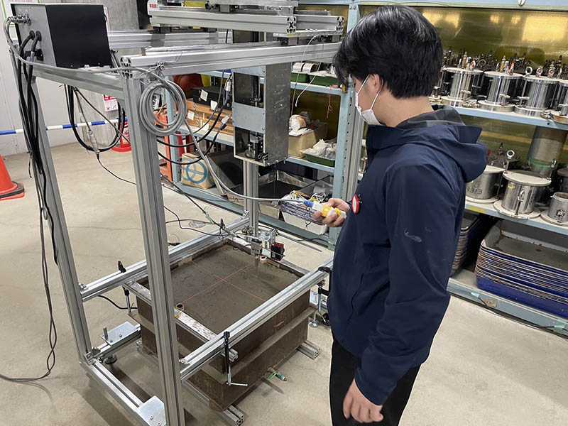 本実験では、丸太の打設による地盤密度の増大を、針貫入試験を用いて評価いたしました。初めての本格的な実験であり緊張もありましたが、無事に終えることができ、