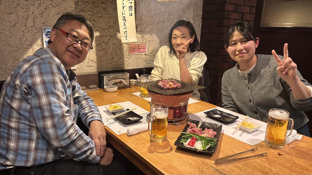 また、夜は懇親会に参加させていただきました。原先生と2人きりでお酒をいただく機会が初めてで少し緊張していましたが、研究室の思い出話をしているうちに、
