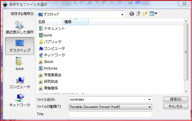 ※ファイルの種類が重要です。下の 2 枚の写真のように,ファイルの種類を「Portable Document Format (*pdf)」