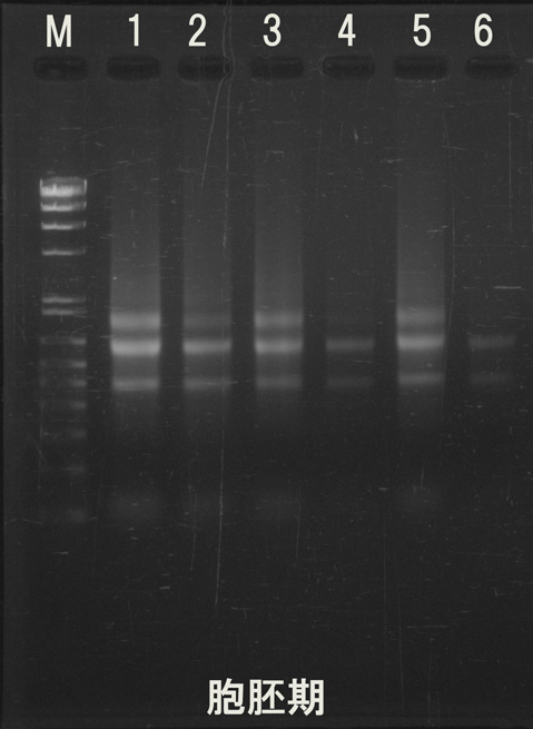 ※この結果を受けて,4細胞期から抽出した RNA に対する作業をここで諦めて,胞胚と初期プルテウス幼生から抽出した
